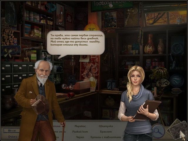 Девушка ищет своего возлюбленного, который исчез при загадочных обстоятельствах. Следы ведут в этот город, но здесь теряются. Нужно срочно найти новые зацепки! Что делать? Вместе с Одри посетите лавку магических предметов и поговорите с ее владельцем — он наверняка знает что-то важное! Уже сотню лет его семья ведет этот бизнес и не раз сталкивалась с настоящими чудесами. Хорошенько расспросите старика, происходит ли в городе что-нибудь странное?