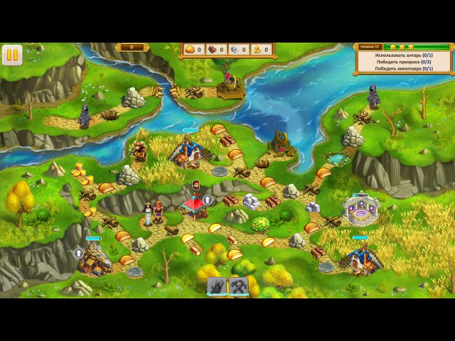 По пути вам предстоит восстанавливать разрушенные мосты, расчищать дороги от каменных завалов и колючих зарослей, а также побеждать циклопов, мохнатых минотавров и красноглазых призраков. Чтобы решить все поставленные задачи, вам понадобятся ресурсы — еда, золото, камень и древесина. Чтобы не ждать, пока вырастет ягодный куст и высохнет очередное дерево, постройте фермы и лесопилки.