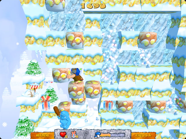 После того, как Грибоед соберет все разбросанные по лабиринту подарки и подкрепится деликатесными горными грибами, откроется дверь, ведущая на следующий уровень. Всего же в игре 60 уровней, разбитых на два этапа. Первый из них, "Снежная проблема", особенно понравится любителям классических аркад. Второй этап, "Зимняя ловушка", порадует поклонников головоломок.