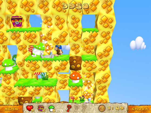 Будьте аккуратны и с разнообразными монстрами, — встреча с ними грозит потерей одной жизни. Но и наш веселый герой тоже не лыком шит: на врага он может сбросить булыжник. Против такого весомого аргумента ни один саблезубый хищник возразить уже ничего не сможет.