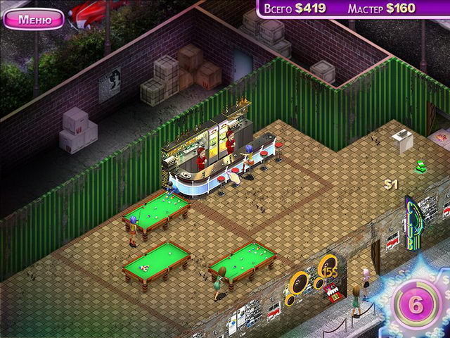 Каждый день посетители выстраиваются в очередь у дверей. Чтобы пригласить клиента внутрь, нажмите на иконку над его головой — там отмечены пожелания гостя. Затем при помощи курсора направьте его в нужный уголок помещения. Старайтесь при этом не ошибиться – если клиент хотел сыграть в бильярд, а вы его отправили в бар, то с чаевыми можно заранее попрощаться.