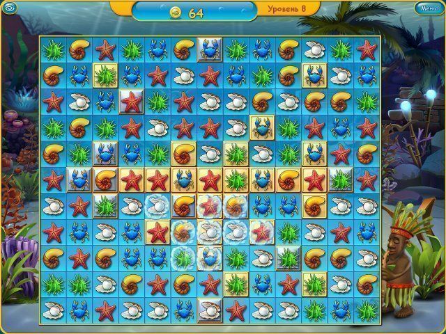 Чтобы создать свой собственный подводный мир, прежде всего вам нужно заработать на игровом поле немного денег. Составляйте линии из одинаковых фигурок, разбивайте плитки под фишкам, собирайте драгоценности и золото и не забывайте, что время прохождения уровня ограничено. С помощью бонусов у вас получится действовать без промедления. "Динамит" и "Бомба" взрывают все вокруг в радиусе нескольких клеток. Один щелчок мыши, и ситуация на игровом поле изменится в вашу пользу.