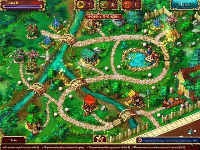 С каждым уровнем задач будет становиться все больше и больше. Поэтому не тратьте времени даром и возьмите себе помощников. Они будут и цветы вовремя поливать, и семена собирать, и дорожки от завалов очищать. Только следите за количеством ресурсов. Если они тратятся быстро, а задачи выполняются медленно, постройте для хранения семян, древесины и инвентаря дополнительные кладовки.