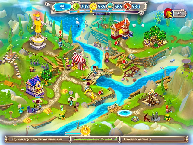 Всего на карте 50 различных уровней, они доступны в трех режимах игры, релакс (без времени), новичок и эксперт. Также на некоторых уровнях вам могут помочь бонусы, которые позволяют существенно упросить прохождение. А еще за прохождение уровней вы можете заработать силу богов, которая поможет отстроить разрушенную Олимпийскую деревню.