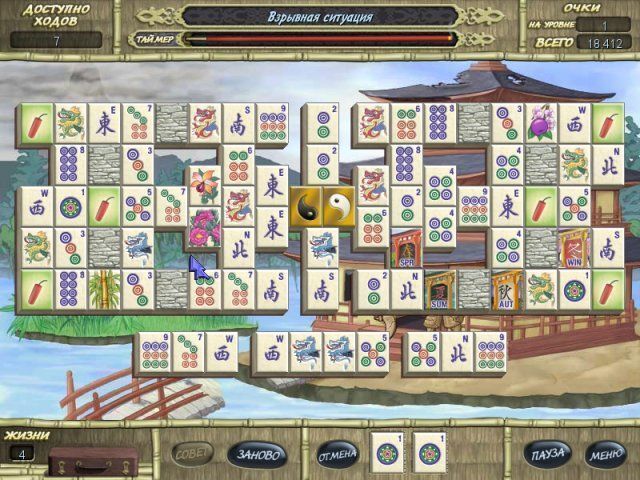 Фишка считается свободной, если на ней ничего не лежит, и если ее можно сдвинуть вправо или влево. В этой версии игры для перехода на следующий уровень вовсе не обязательно собирать абсолютно все костяшки. Достаточно совместить волшебные фишки Инь и Янь.