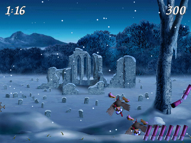 В этой аркадной стрелялке вам предстоит остановить армию пернатых десантников. Правила остались неизменными. Каждый раунд поединка длится полторы минуты, и за это время вам нужно настрелять как можно больше морхухнов с помощью своего верного восьмизарядного дробовика.