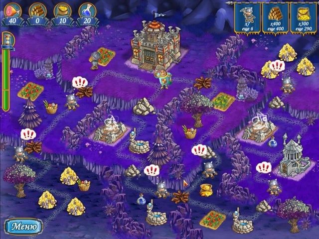 Обратите внимание на основные показатели вашего труда: еда, дерево, золото и мана — волшебная вода, с помощью которой совершаются магические обряды. Они все взаимосвязаны. Например, без отличного завтрака рабочий не сможет срубить ель и пополнить запасы дерева для строительства. Поэтому первое, что нужно сделать, — это раздобыть побольше продовольствия. Соберите с грядок спелые овощи и не зевайте: очень скоро они поспеют снова. Чтобы пополнить свою казну, отправляйте вассалов на поиски золотых самородков — дело это чрезвычайно выгодное! Хоть и говорят, что мана на дороге не валяется, как бы ни так! Будьте внимательны, и вы обязательно найдете сосуды с магической жидкостью. Используйте ее, чтобы удвоить ваши урожаи на огородах и запастись вкусными овощами впрок.