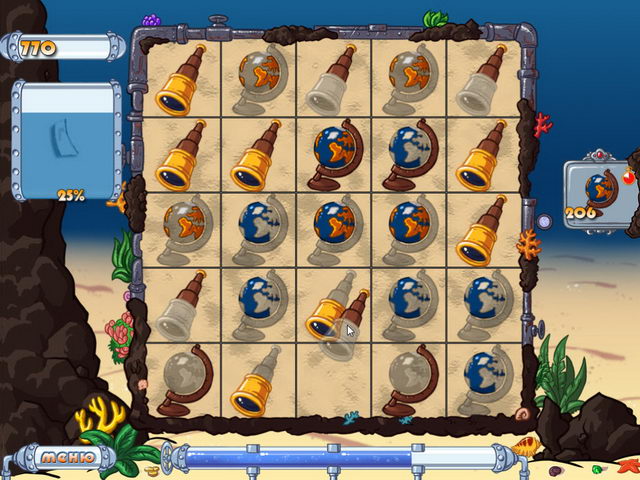 Клетки поля заполнены фигурками — крабами и медузами. Но не все фишки одного типа в точности совпадают! У каждого элемента активна только часть: она четкая и яркая, а все остальное видно гораздо слабее. Перемещайте фишки друг на друга с помощью мыши и собирайте целые фигурки, без неактивных частей! Обращайте внимание, какую именно фишку нужно собрать следующей, она указана в правой части экрана. Готовые фигурки передвигайте на это изображение и зарабатывайте очки!