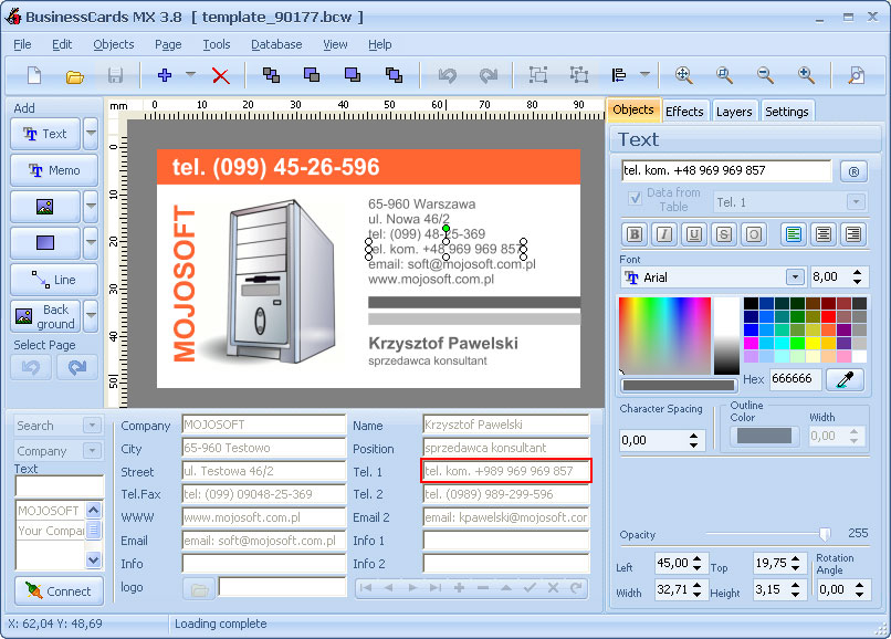При помощи этой программы Вы легко и быстро запроектируете и распечатаете профессиональные визитки.Интерфейс программы запроектирован так, чтобы даже у начинающего пользователя не было проблем с обслуживанием программы.Процесс проектирования заключается во вставке готовых доступных в программе элементов таких, как текст, фигуры, изображения и фон, а также произвольном их перемещении на разрабатываемом проекте.Программа использует шаблоны визиток, которые можно подготовить самому или использовать готовые образцы визиток, доступные в программе. В программе доступны около 400 образцовых шаблонов визиток . Полное описание »